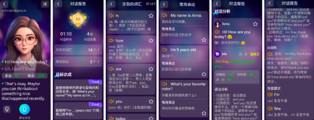 一个核心特色是,其AI口语老师深度融合K9主流课本(如人教版),涵盖校园、家庭、购物、旅行等场景的超68个高频生活主题,学生可随时跟读教材原文,AI智能评分并纠正发音,再通过情景对话实战巩固知识点。