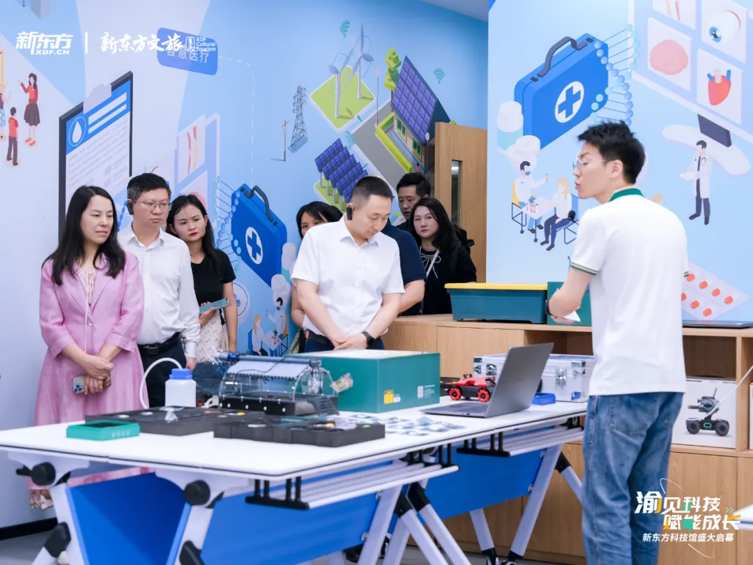 据介绍,新东方科技馆现有研学课程均由新东方智慧教育产研团队、高校研究院人工智能领域教授及重庆新东方学校优秀师资团队共同研发,内容涵盖人工智能、无人机、机器人编程、智能制造、无人驾驶等前沿领域,课程融入STEAM教育理念。在教学实践环节,科技馆配备的教师均来自新东方重庆学校科创一线,具备丰富教学经验与扎实能力。