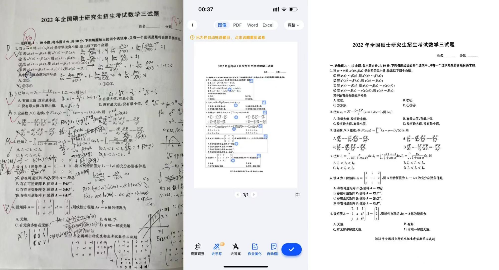 (夸克扫描王对手写试卷进行扫描效果,图片来源自社交平台)