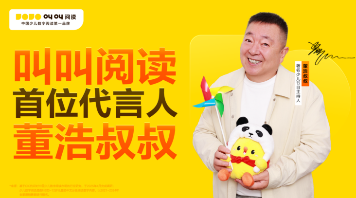 多知8月29日消息,少儿数字阅读品牌叫叫宣布与少儿节目主持人董浩叔叔达成合作,董浩叔叔成为叫叫阅读上线至今首位代言人。