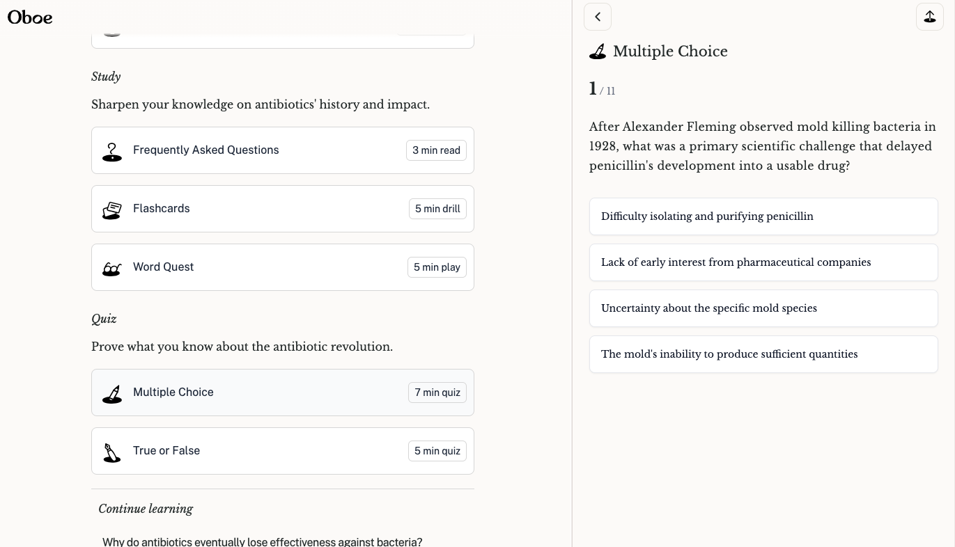Oboe针对用户抛出的每个问题,都提供了九种学习模式。