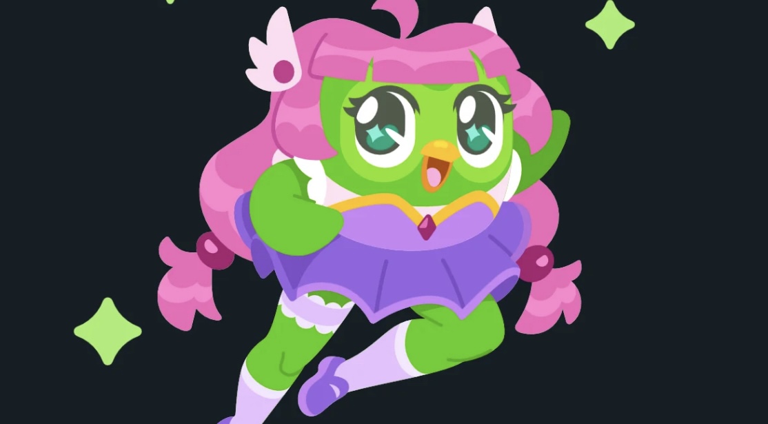 这几天,国内用户打开后,已经可以收到动画片中,邪恶小绿鸟变身后的形象,多邻国为其配文“学习就是最强魔咒”。