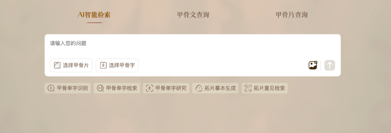 该智能体主要聚焦甲骨文研究与文化普及中的高频场景,支持甲骨单字识别、字形检索、释读查询、摹本生成与拓片重见检索等核心功能。用户只需上传一张甲骨图片,AI 即可完成文字识别、释义查询、文献溯源和数字摹本生成,实现从学术研究到文化体验的完整闭环。对于研究者而言,它显著缩短了资料收集与比对时间;对于公众而言,可以通过小程序“了不起的甲骨文”体验甲骨识读的乐趣。