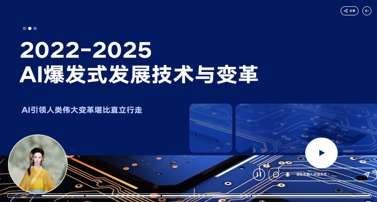 2)语义理解: AI数字人会基于预设的私域知识库和当前的PPT上下文,立刻停止讲解并进行即时答疑。