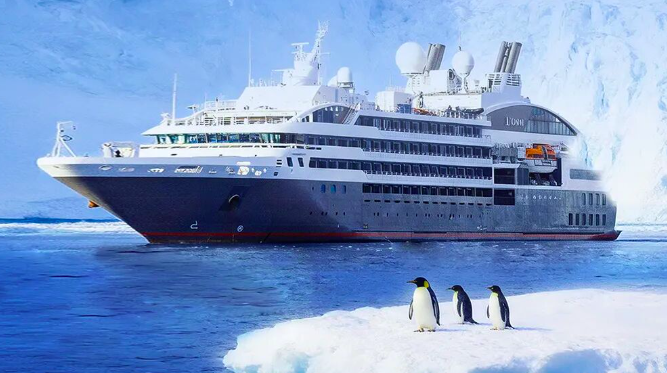 据介绍,该旅程将于2027年2月4日起航,为期18天15晚,行程包含中国长城站探访、极地生物观测、极地巡游体验、南极辐合带探索等。其所乘邮轮为“新东方文旅·庞洛邮轮星辉号”(是2021年升级的法国高端极地邮轮LE LYRIAL,吨位达10944吨,船长142米,船宽18米,有7层甲板)。