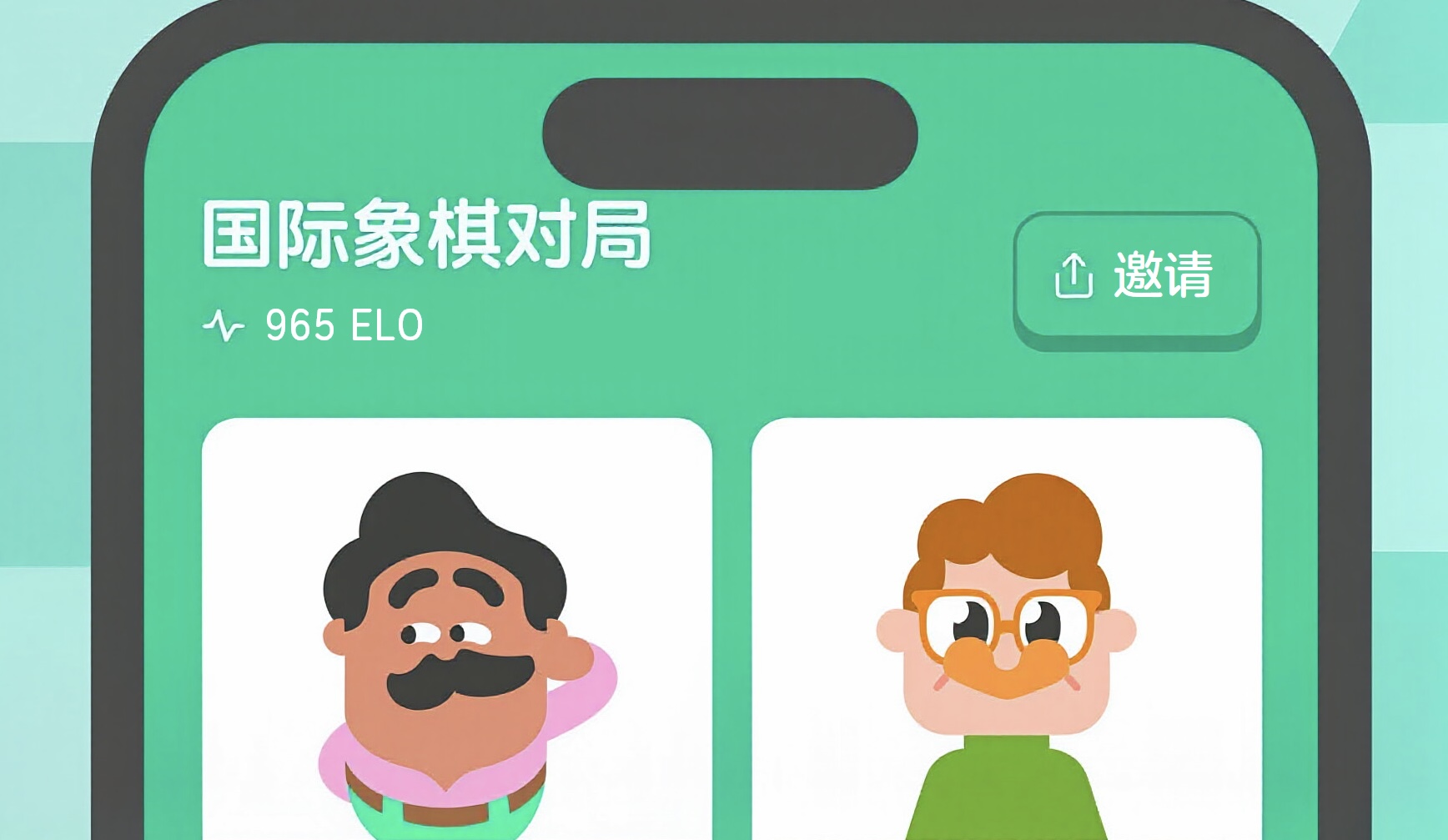 目前使用iOS系统的用户在将多邻国App更新到最新版后,进入国际象棋课程的“对局”页面,就可以邀请好友对战。