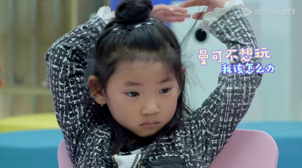 或许是因为王昱尧和昂米诺的不顺利让另一个小朋友产生了畏难情绪,曼可小朋友提出她不想玩这个游戏,不想要小马宝莉的气球。