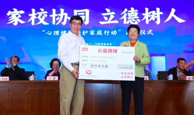 多知网11月14日消息,近日,在中国下一代教育基金会组织实施的“家校协同立德树人”——心理健康守护家庭行动启动仪式上,北京高途云集教育科技有限公司董事长陈向东向中国下一代教育基金会捐款1000万元,用于提升家庭教育和儿童青少年心理健康水平。