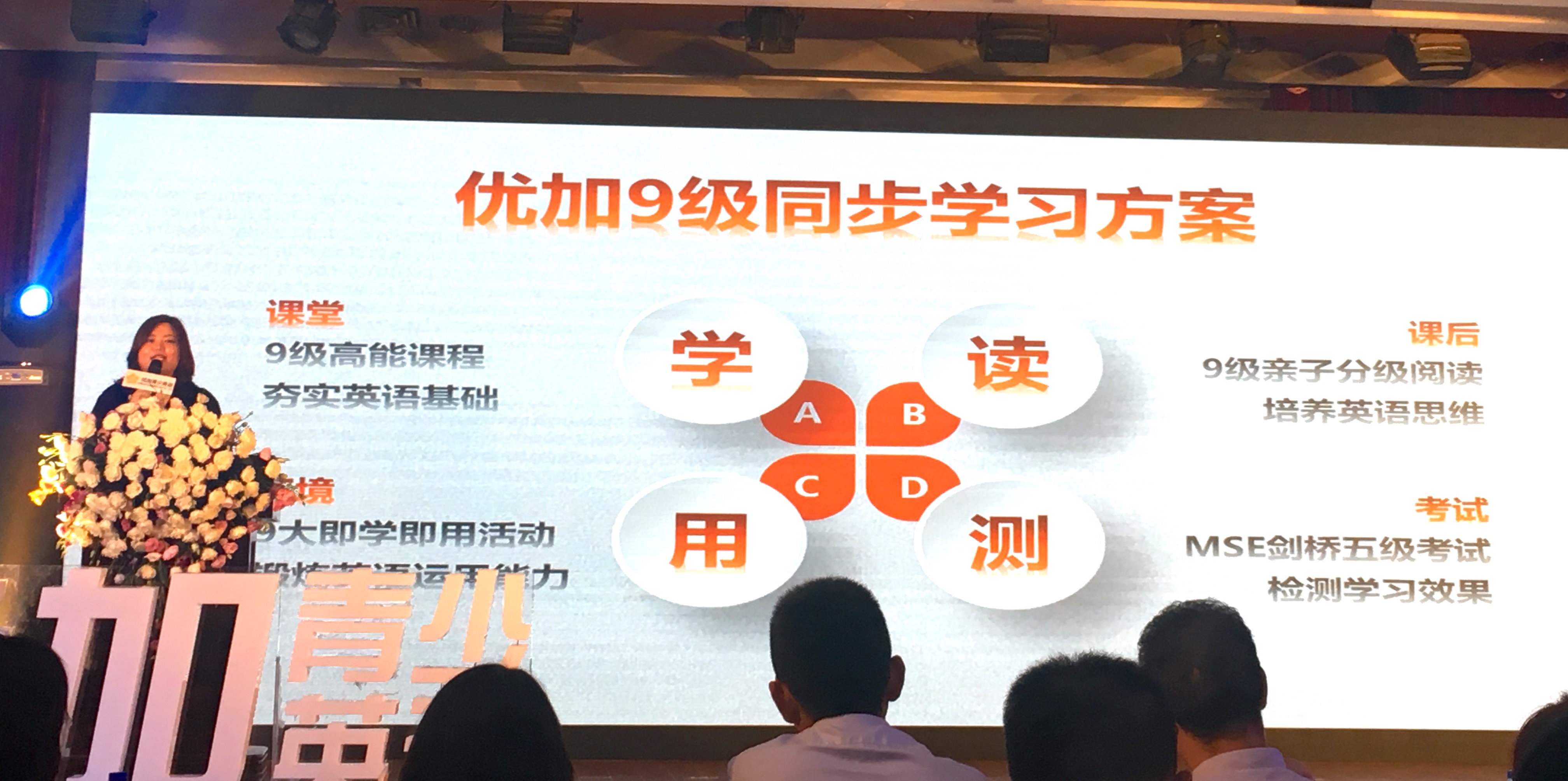 在课堂教学方面,推9级“高能课程”;在家庭教育方面,与麦克米伦合作推出9级亲子分级阅读;在学习环境方面,推9大即学即用活动,包括唱响英文、英语朗诵、动画配音、英语话剧等;在测评方面,引进MSE剑桥英语通用五级考试。