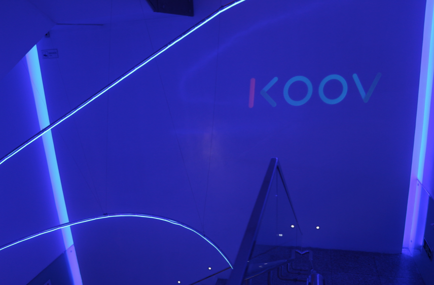 按照参观顺序,首先来到的是“光色”主题区域。通过一个蓝色光影隧道……