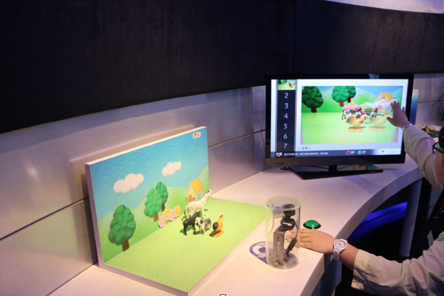 使用摄像机一点点地转动图画,拍摄连续图案拍摄成动画。早期动画生产的过程,告诉小朋友动画是由一帧帧图片快速衔接而成的。