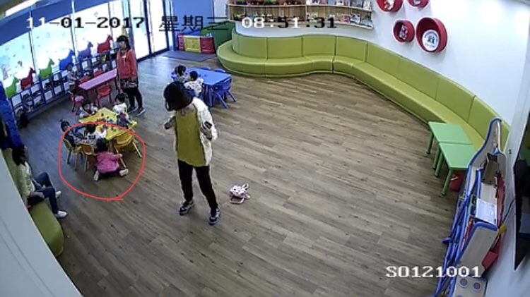 目前网上流传较多的两段视频事件分别发生于11月1日早上及11月3日中午。其中,11月1日早晨,某教师一边粗暴地给孩子脱外套一边将孩子的书包摔了出去,同时因该教师用力过猛,孩子重心不稳撞到了桌角。