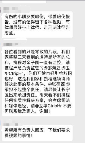 孙洁称委托第三方来管理亲子园,初衷是希望让专业的、有资质的团队来照顾好携程的孩子们。而对于此次事件,无论是亲子园方,还是携程方的责任人,都必须受到应有的惩罚!