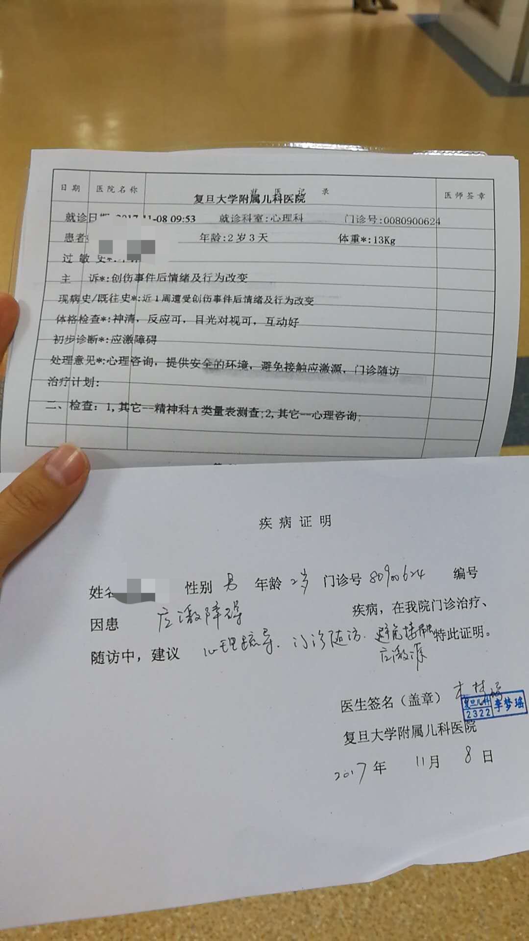 (一位小朋友的诊断证明)