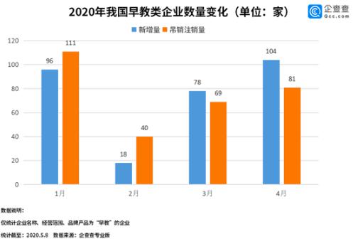 另据企查查相关数据,今年3月份新增78家早教类企业,4月份新增104家早教类企业,环比增长33.3%。