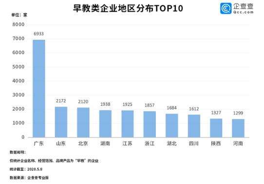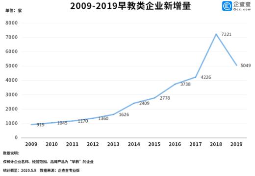 企查查数据显示,截止2020年5月8日,全国与“幼儿早期教育”相关的企业注册量达3.7万家,其中经营状态是在业、存续的企业有3.0万家,已注销或吊销的企业有0.6万家。