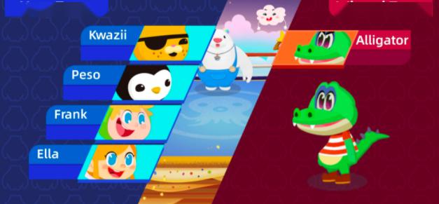 首先,将海底小纵队IP融入课程的游戏化交互中,除了北美外教课中的巴克队长,章教授和呱唧带领孩子开始双语绘本课;在游戏测评课中可以选择皮医生或者呱唧进行知识比拼,每节游戏化练习课都会见到呱唧、皮教授等小纵队成员们。