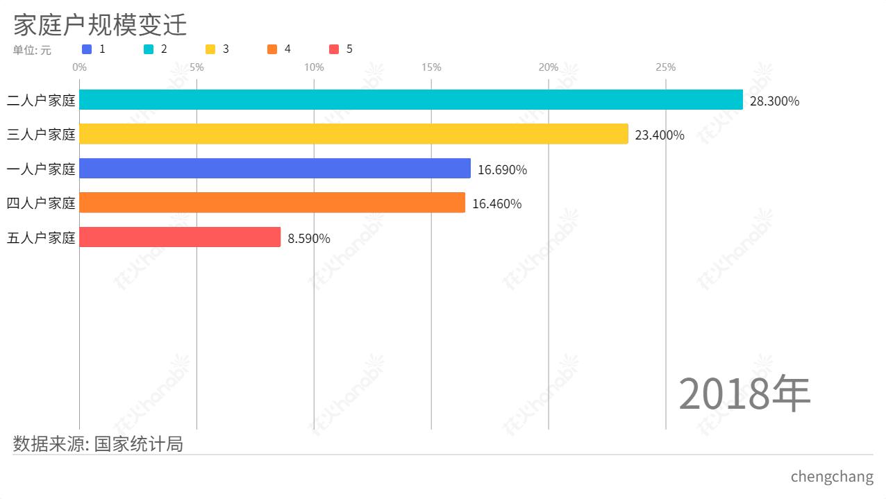 启蒙英语产品直面的用户正是后浪们组成的新生家庭。在个体角度上,新生家庭家长受教育程度高,具有较强的教育投资意愿。不过真正让启蒙英语快速发展的其实还是社会因素。在家庭户规模上,从2003到2018年,小家庭比例逐渐提高,2018年二人户家庭更是超越核心的三人户,成为主流家庭规模。