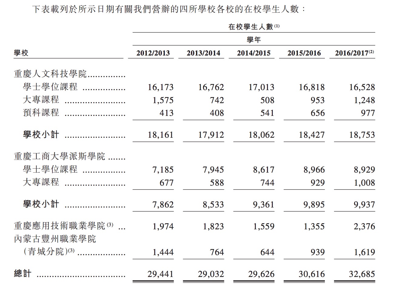 截至2016年6月30日,重庆人文科技学院在校学生18753名,教师629名;重庆工商大学派斯学院在校学生9937名,教师269名;重庆应用技巧职业学院在校学生2376名,教师119名教師;内蒙古丰州职业学院(青城分院)在校学生1619名,教师73名。