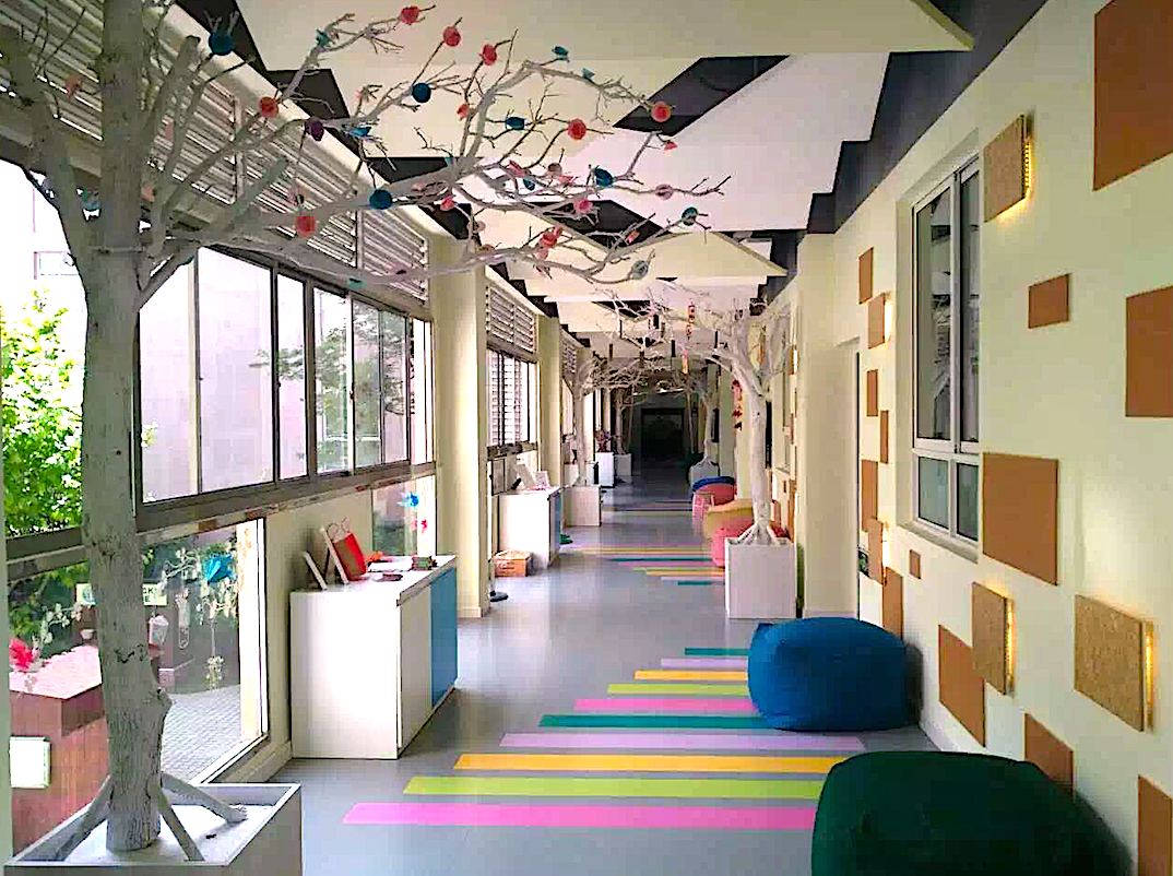 比如上海市闵行区田园外语实验小学是一所美术特长学校,学校提出希望将绿色环保概念和科学元素融合,最后我们设计出的创客空间,所有东西都是用回收纸做的。纸张回收会用到的设备,有现代的碎纸工作业化设备,也有最传统的设备,让回收纸成为纸浆、重新漂白、再制作,成为雕塑、泥巴的材料,来上色烘干,可以重新使用。