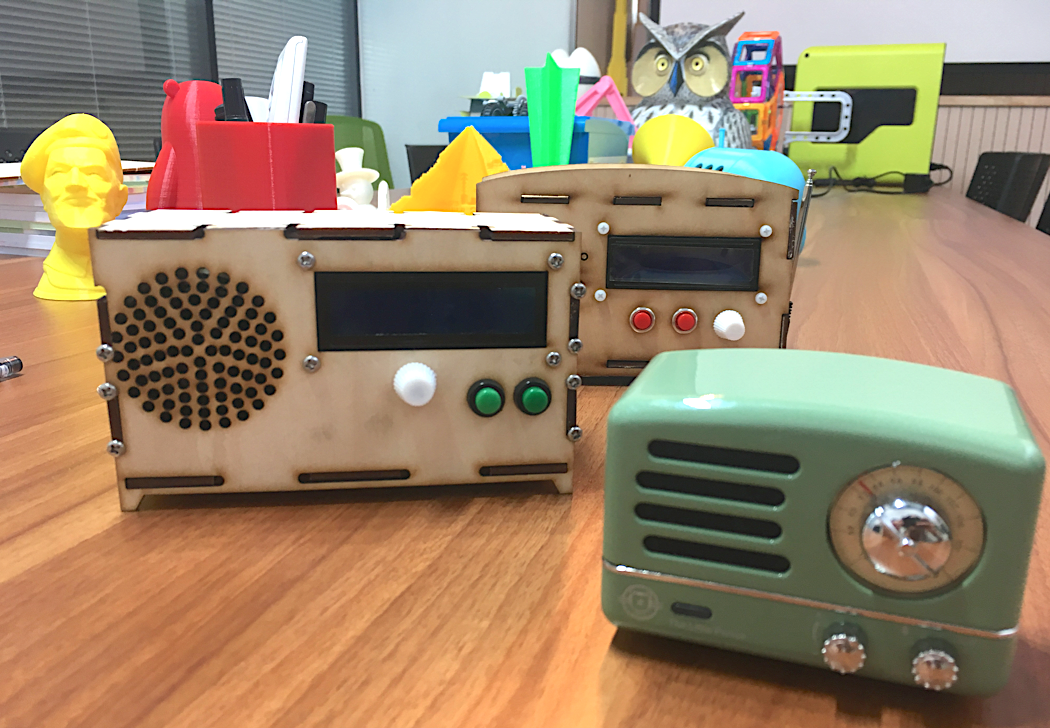 教学现场是创意共建的场景。一次教研员和寓乐湾的磨课时,我们想“造物”,需要包含平面加工、电子元器件,想到播放器是不是符合设定。于是在课研人员和学校的老师上课的时候,现场突发奇想可以用“收音机”这个概念,学生们一发不收拾,做出了各种产品,融合了很多元素。最后这套课程海淀区广泛都开课。