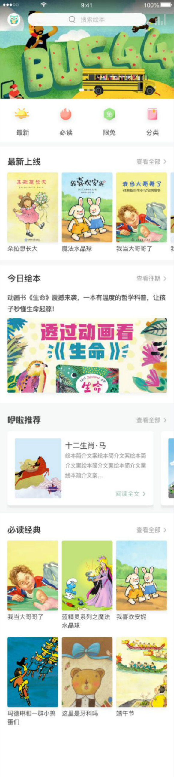 咿啦看书是儿童多媒体交互式数字阅读平台,提供动画、游戏、配音、交互、亲子等阅读体验功能。咿啦看书已与海内外百余家童书出版社、国内外知名动漫公司达成版权合作,拥有数千种绘本童书版权资源。