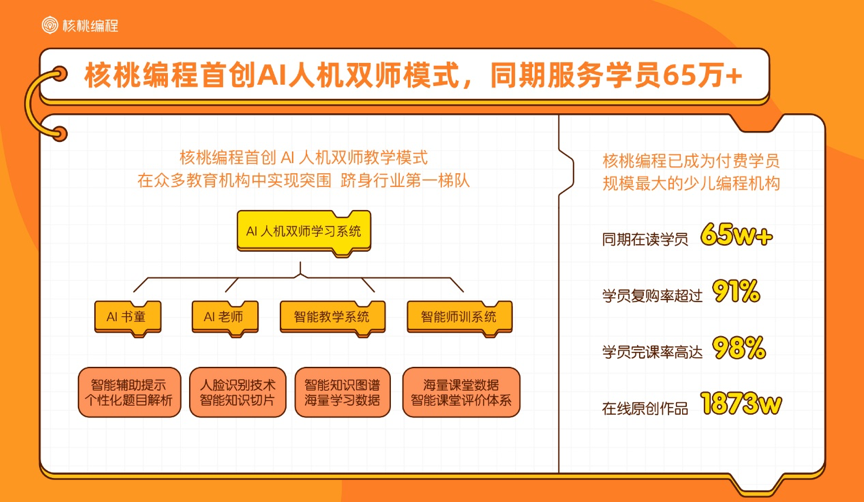 截止2019年8月,核桃编程已经成为付费学员规模最大的少儿编程教育机构,帮助超过65万名孩子收获学习兴趣。