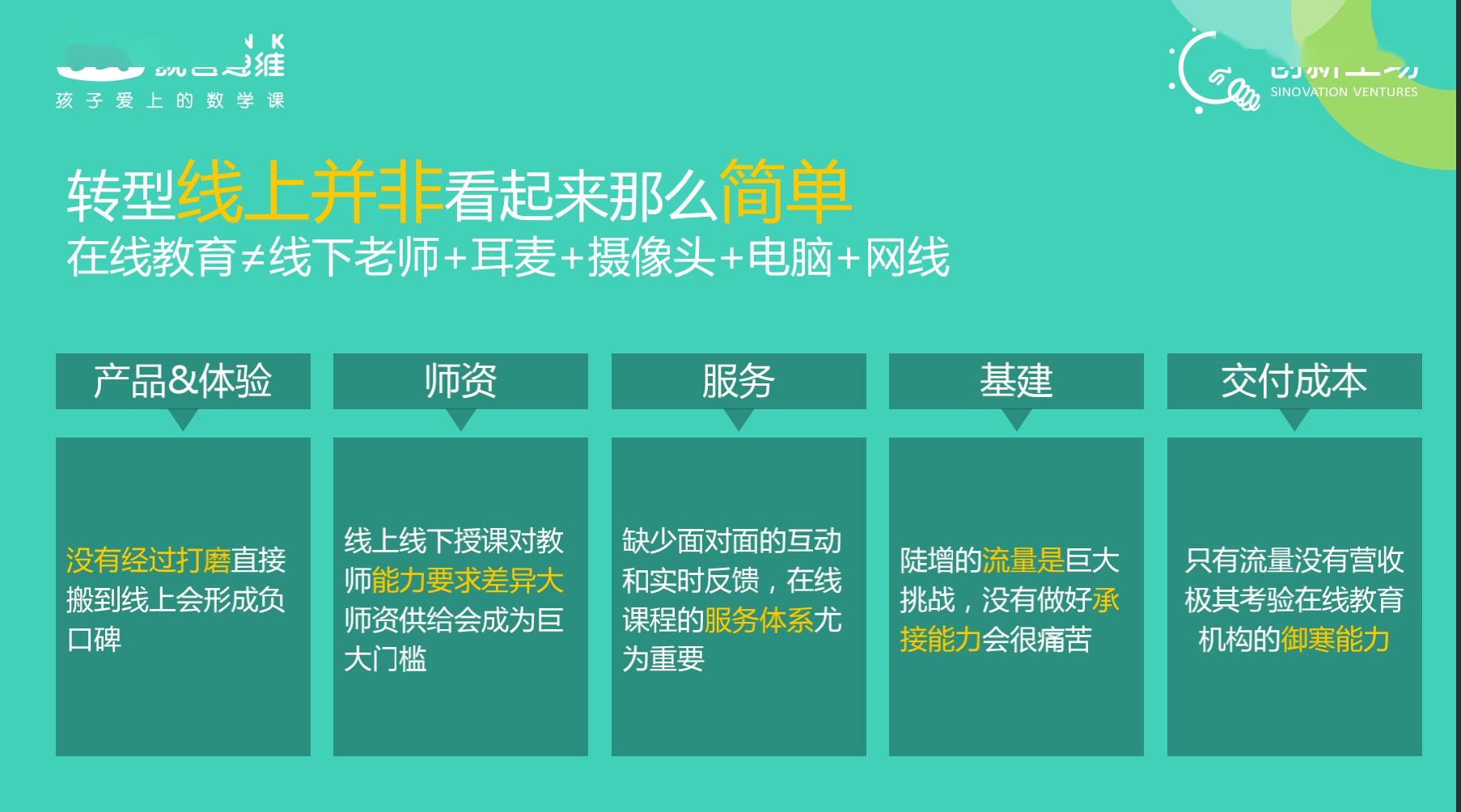 那第二观点想分享一下,就是我们认为转型线上并非看起来那么简单,这句其实我很愿意分享给所有的教育行业的同行的。因为这个事情是豌豆在三年前的经历,我们大概是在2018年的时候转型从线下机构到转型到线上来。我们是非常清楚这里面的坑,所以线上转型没有那么的看起来那么简单的美好。