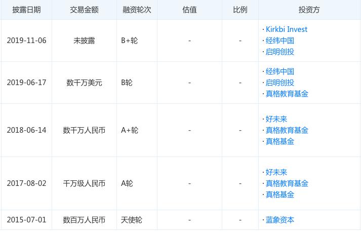 据天眼查显示,画啦啦此前已经完成了5轮融资,在2015年获得蓝象资本数百万元的天使轮投资;分别在2017年8月与2018年6月获得由好未来领投、真格基金跟投的千万元A轮及数千万元A+轮融资;在2019年完成B1和B2轮融资。