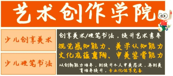 第一,艺术创作学院。课程涵盖少儿创享美术、少儿硬笔书法;