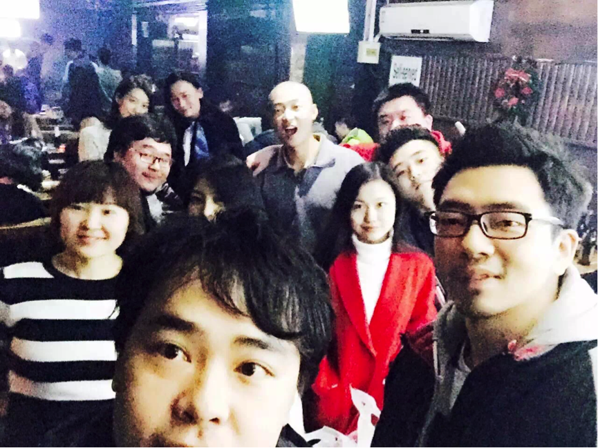 那晚,整个剧组的人去吃饭,从他后来放在朋友圈的照片,想到他曾说过的一句话“有酒就别少喝,有爱就别早撤”。