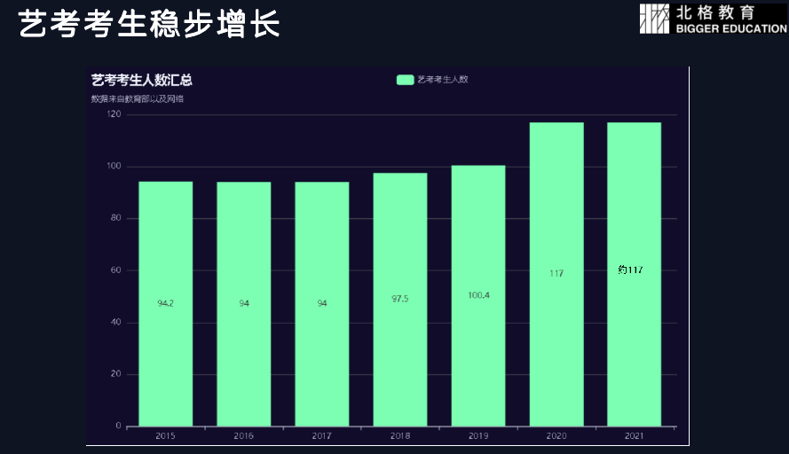 第三,高考指挥棒效应。国内有很多艺术类的大学,每年招生计划其实都有变化,逐年增加,对于艺术类学校目前持续在扩招。