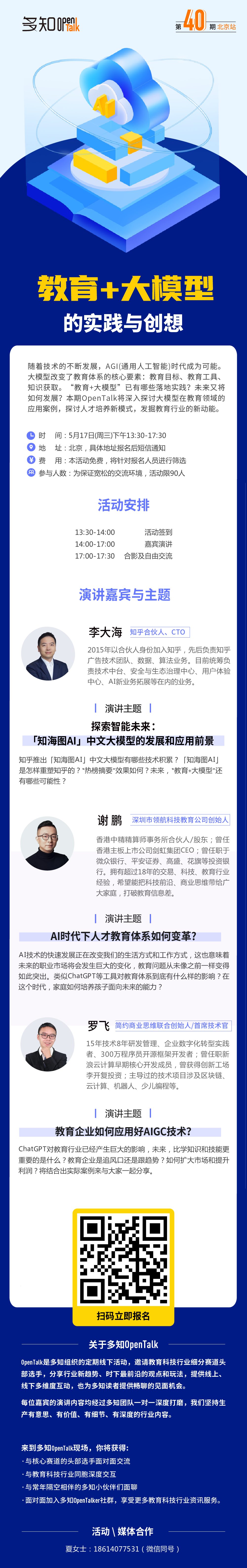 OpenTalk是多知组织的定期线下活动,邀请行业细分赛道头部选手,分享行业新趋势、时下最前沿的观点和玩法,提供线上、线下多维度互动,也为多知读者提供畅聊的见面机会。