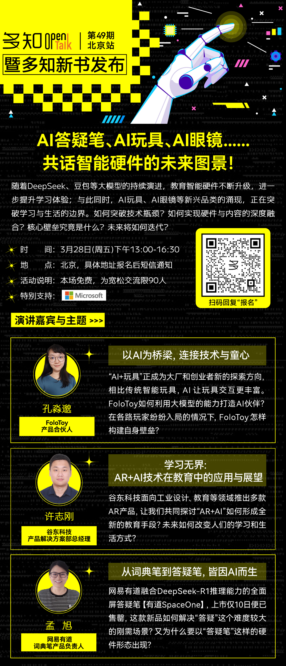 同时,AI眼镜掀起“百镜大战”,学习智能硬件产品也有新变化。谷东科技产品解决方案部总经理许志刚、网易有道词典笔产品负责人孟旭将现场拆解AI硬件的底层逻辑。