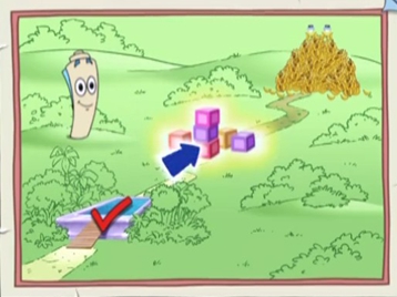 每集的开始,地图都会告诉朵拉和小观众们如何才能完成任务。比如要先过高高的大门、再过小溪最后达到目的地。路线会在开头、每个关卡任务完成后都重复一次。