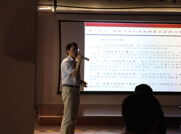 多知网6月10日消息,多知网线下活动【Open Talk】第二期——《教育培训机构如何迎接新三板的风口?》在北大孵化器举办。北京大悦律师事务所高级合伙人祝伟在本次活动中,重点向现场观众们分享了教育培训行业挂牌新三板将面临哪些法律问题以及登录新三板需要参考的政策规定。