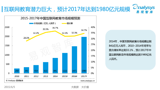 2014年对教育行业乐观的前景展望吸引大量资本涌入互联网教育行业。该份报告,笔者综合分析了2015年教育O2O行业发展的现状与趋势、面临的机会与挑战,并对教育O2O进行展望。希望通过该报告能对想了解进入家教O2O行业的朋友提供一些实在的帮助。