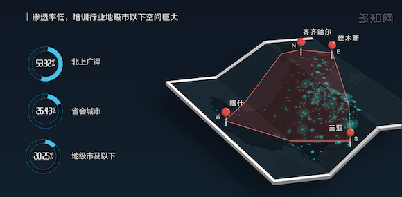 地域上看,南至三亚,西至喀什,北到齐齐哈尔,东到佳木斯,都有培训行业从业者的足迹。