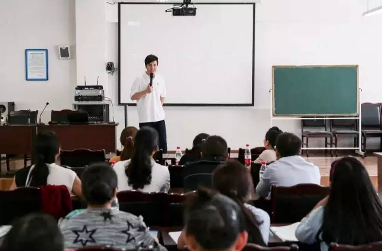 (图为新东方教师艾力给九寨英语教师培训现场)