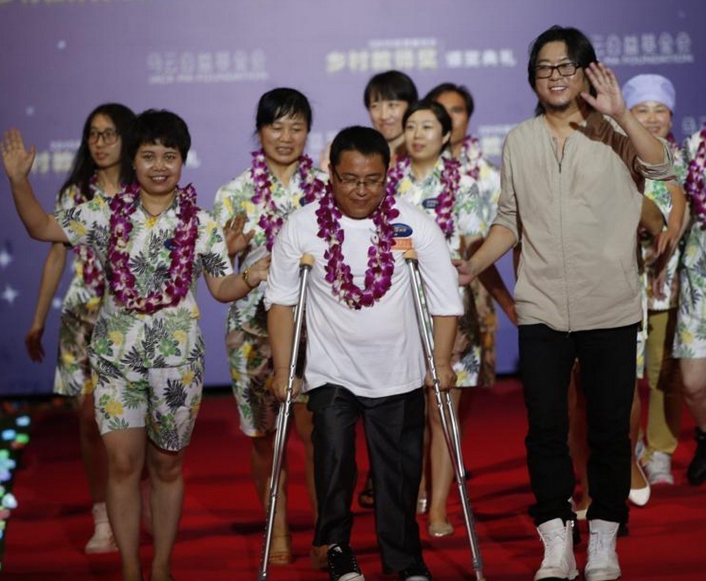 (图为高晓松搀扶获奖乡村教师走红毯)